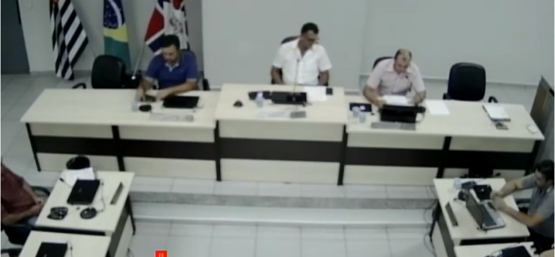 Vereadores presentes: ANGELA MARIA BUSNARDO, DOUGLAS FRANÇA AIRES SCARDELATO, FABIO COLA DE LIMA, JUAREZ EDUARDO RIBEIRO, LUIZ CARLOS DE MORAES JÚNIOR, MARIA DE FÁTIMA LANFREDI DOS SANTOS, ROQUE DONIZETI CÂMARA, RORIVALDO OTÁVIO DAS CHAGAS, e o Presidente SIDNEY ZÓSIMO VIDOTTI.