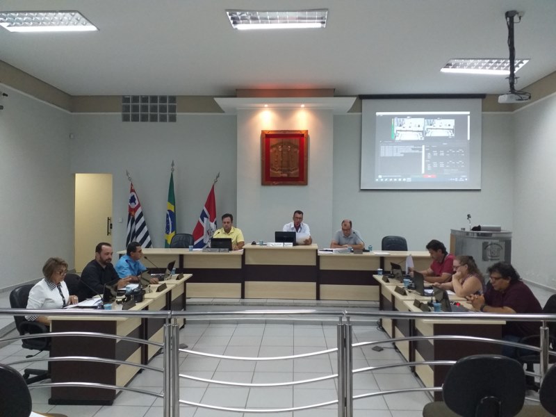 Vereadores presentes: ANGELA MARIA BUSNARDO, DOUGLAS FRANÇA AIRES SCARDELATO, FABIO COLA DE LIMA, JUAREZ EDUARDO RIBEIRO, LUIZ CARLOS DE MORAES JÚNIOR, MARIA DE FÁTIMA LANFREDI DOS SANTOS, ROQUE DONIZETI CÂMARA, RORIVALDO OTÁVIO DAS CHAGAS, e o Presidente SIDNEY ZÓSIMO VIDOTTI.