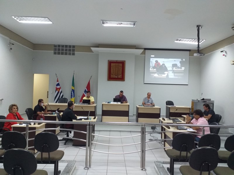 Vereadores presentes: ANGELA MARIA BUSNARDO, DOUGLAS FRANÇA AIRES SCARDELATO, FABIO COLA DE LIMA, JUAREZ EDUARDO RIBEIRO, LUIZ CARLOS DE MORAES JÚNIOR, ROQUE DONIZETI CÂMARA, RORIVALDO OTÁVIO DAS CHAGAS e o Presidente SIDNEY ZÓSIMO VIDOTTI.