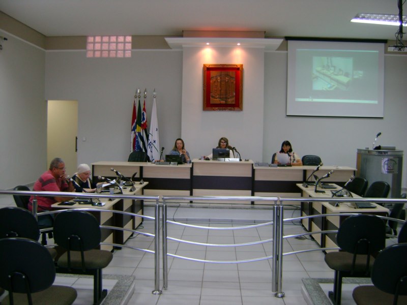 Vereadores presentes: LUZIA AP. CASTRO GUERRERO FACUNDINI, MARIA CÉLIA PIRONI ANDRADE, MARIA DE FÁTIMA LANFREDI DOS SANTOS, PAULO ROBERTO MAGALHÃES e a Presidente ANGELA MARIA BUSNARDO.