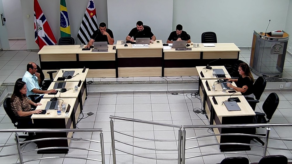 Vereadores presentes: ALESSANDRO JUNIOR PANTALIÃO, CÉLIA MARIA CIARLO BOTACIN, EDUARDO BERNARDES, ELIANE TAXIOTTI, LUIZ CARLOS DE MORAES JÚNIOR, e o Presidente GABRIEL RISSI VIEIRA.