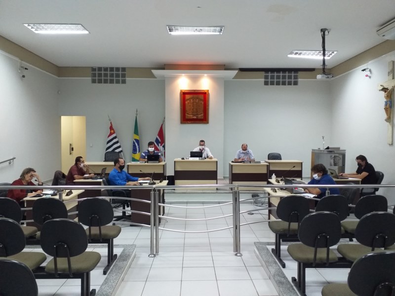 Vereadores presentes: ANGELA MARIA BUSNARDO, DOUGLAS FRANÇA AIRES SCARDELATO, FABIO COLA DE LIMA, JUAREZ EDUARDO RIBEIRO, LUIZ CARLOS DE MORAES JÚNIOR, ROQUE DONIZETI CÂMARA, RORIVALDO OTÁVIO DAS CHAGAS e o Presidente SIDNEY ZÓSIMO VIDOTTI.