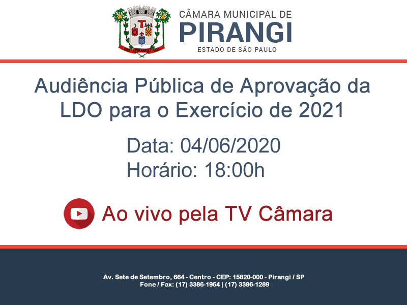 Audiência Pública de Aprovação da Lei de Diretrizes Orçamentárias para o Exercício de 2021.