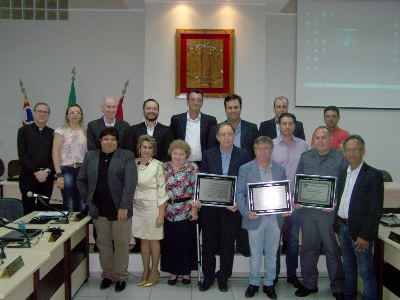 A Câmara de Pirangi realizou, no último dia 18 de setembro, a solenidade para a outorga de Título de Cidadania ao médico Dr. Carlos Jácomo Pollo, ao padre Jaime Gombio e ao sargento da Polícia Militar Flávio Henrique da Silva em reconhecimento aos bons e relevantes serviços prestados em prol do município. As homenagens ao Dr. Carlos Pollo e ao sargento Henrique foram propostas pelos então vereadores Célia Pironi Andrade, Luzia Castro, Pedro Fernandes e João Albani Neto no encerramento da legislatura passada. Já a iniciativa da homenagem ao padre Jaime também ocorreu no final de 2016 e partiu das vereadoras, à época, Célia Pironi Andrade e Luzia Castro.