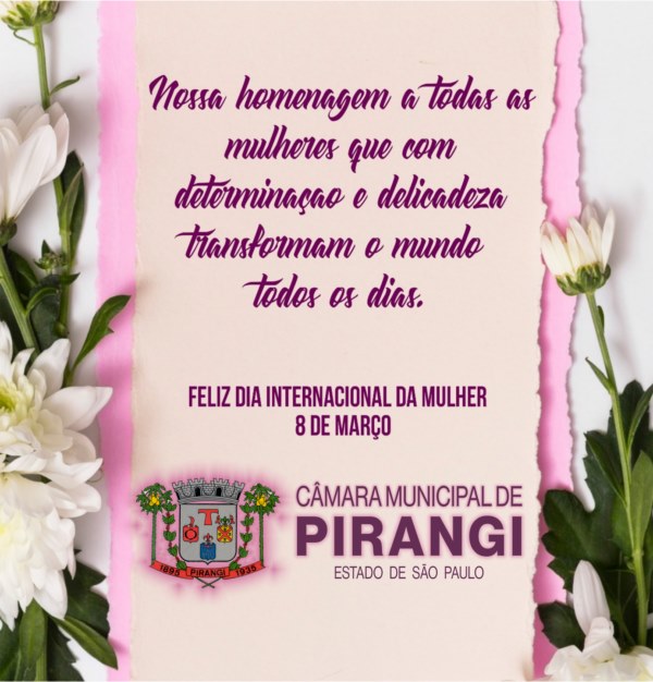 Para celebrar o histórico de lutas e avanços das conquistas femininas, comemorado em 8 de março, Dia Internacional da Mulher, a Câmara de Vereadores deixa mensagem para todas as mulheres.